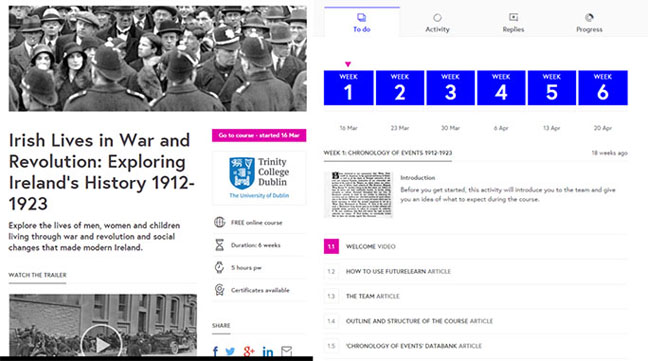 Figure 1. The Irish Lives MOOC home page and week one course outline.