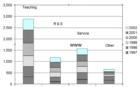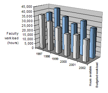 Figure 2 shows the budgeted breakdown of academic staff workloads per semester within the faculty between 1997 and 2002.