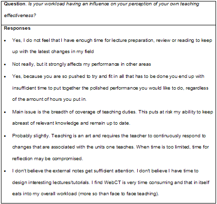 Table 1. Perceptions of impact of academic workload on individual teaching effectiveness, Faculty of Rural Management, University of Sydney, 2002.