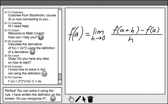 In modern education, large-scale instruction is sometimes combined with more exclusive one-to-one, tutoring-oriented activities. One such learning activity is online coaching. Online coaching is an inquiry-based learning activity where a person gets support on a specific subject from a more knowledgeable person using the internet (Hrastinski & Stenbom, 2013). One example of online coaching is a program called Math Coach, through which K–12 students, using text-based instant messaging complemented by a shared digital whiteboard, can receive help with their math studies from university students studying to become K–12 math teachers.