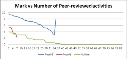 As commonly occurs (Putnik et al., 2015), those who participate more achieve a higher mark, as shown in Figure 4. Only 35 learners performed the two compulsory peer-reviewed activities, seven did only one, and 82 students did some activity in the platform such as visualizing videos or participating in the forum. This demonstrates that people who enrol in a social MOOC do not seek to achieve a certificate but to gain knowledge on a topic.
