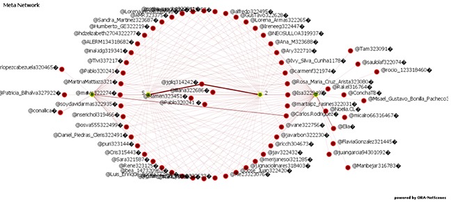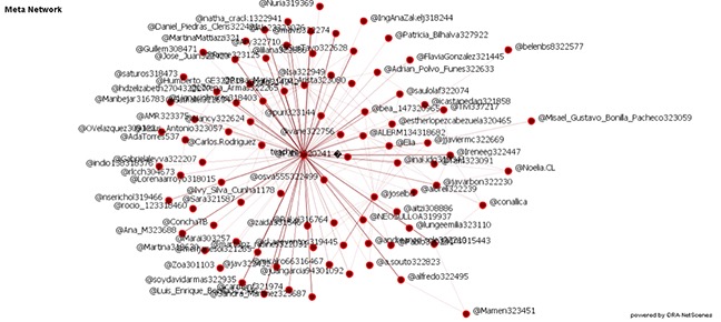 Figure 11. Interaction graph built from the interchange of messages on Facebook. Node size is proportional to the number of likes that these participants received. This number is shown in Table 7.