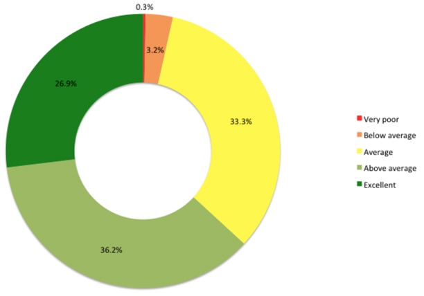 Sixty-three percent of respondents judged the overall quality of their open textbook to be above average or excellent, with an additional 33% rating it as average. Only 3.5% of the sample rated their open textbook below average in quality (see Figure 4).