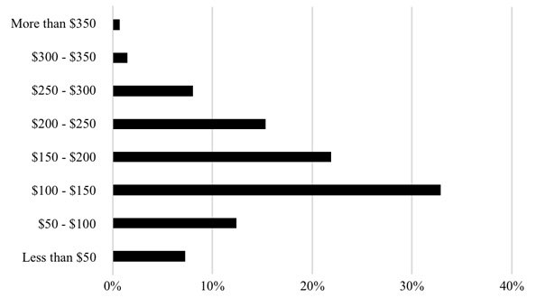 Finally, 81% of faculty members in the study believed that without the use of open textbooks each student would generally spend $100 or more per course on required textbooks (Figure 3).