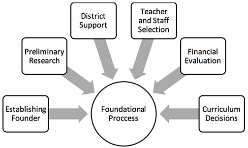 Establishing founder. Each school had an individual who led the process, but the source of initiation for each school differed greatly. Field Haven was initially a district creation, with three different district founders driving the foundational process and working with teachers in the first year before the school was handed off to a site administrator. These founders included the District Director of Curriculum and Professional Learning and the District Director of Communications, and another District Officer. Kelly, a founding teacher at Field Haven, explained: