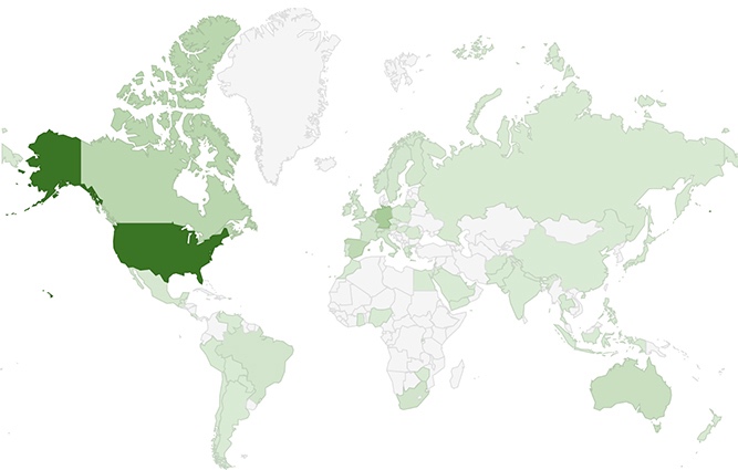 First, to understand location differences, we mapped location data to individual tweets and discovered that 40.4% of the identifiable users were from the United States and that these users had created 48.4% of the tweets (cf. Figure 1 and Table 6). The next highest countries in this ranking were the United Kingdom (9.6%) and Germany (9.2%). This result indicated that the U.S. represented an extremely strong plurality in conversations surrounding openness, that all other countries combined only constituted a very slight majority, and that the Western world represented a strong majority.