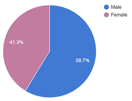 Next, when we considered gender, we found that participating males exceeded females by 17.4% overall (cf. Figure 2). To determine whether the proportion of males to females changed from year to year, we grouped all "open" tweets by coded users according to year and found that participation percentages changed by year (cf. Figure 3 & Table 7). Notably, males were overrepresented in 2010 at a 3 to 1 rate, but this disparity gradually disappeared when in 2013 female participation exceeded male participation (55% to 45%). This gain was gradually lost, however, as rates returned to their 2011 levels in 2016, with males out-tweeting females at a rate of 2 to 1.