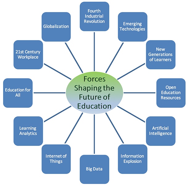 The experts mentioned a variety of forces that are shaping the future of education, forces which they feel will impact the skills required by future teachers to provide quality education and support to learners (Figure 1).