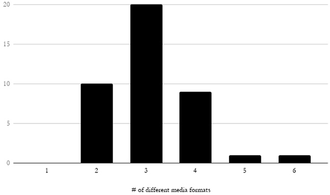 Figure 4. Textbook distribution by the number of available media formats per title.