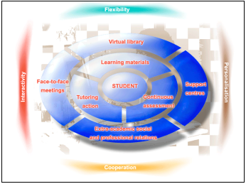 The Campus Virtual TM is an Internet based e-learning delivery and support system. It uses client-server Web technology and common interface to integrate a series of services and applications. Developed by the Information Systems Department at UOC, all Campus Virtual TM applications provide an efficient environment for tele-cooperation and e-learning, including a series of functions that parallel the structure of a traditional university. These functions include: access to online educational materials, library resources, and general academic and cultural information; student management enquiries service; and interaction with professors and other students through pre-defined communication channels (e.g., forums, activity spaces).