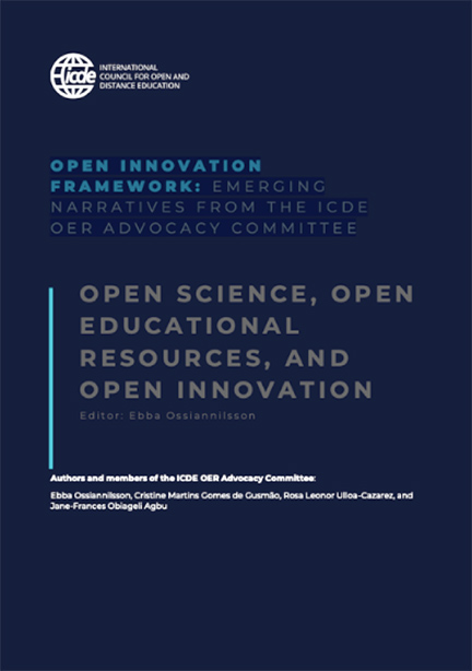 In October 2021, the ICDE Open Educational Resource Advocacy Committee (ICDE OERAC) brought together 13 participants from different countries to engage in a workshop as part of the ICDE Virtual Global Conference Week. The purpose of this workshop was to create a framework for open innovation that could be published and disseminated globally to those in higher education, including scholars, researchers, and institutions. The report authors are deeply and broadly experienced scholars, practitioners, and leaders in open education initiatives worldwide, and, interestingly, they applied an open science approach to this project.