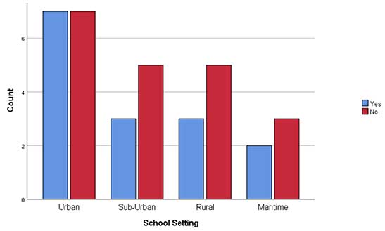 | School setting | Urban | 11 | 3 | 14 |