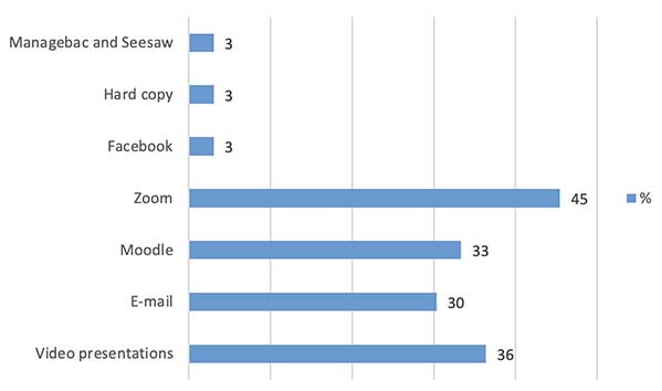 Teachers selected a combination of online assignment submission and feedback platforms. Most teachers (80%) chose Zoom as their primary platform, preferring that students present their assignments online and receive immediate feedback. Moreover, 28.6% chose the Moodle platform. In addition, some teachers used e-mail (25.7%), Google Meet (14.3%), and Viber/Messenger (2.9%) for communication. Our findings disclosed that a few teachers attempted to explore additional online tools like Seesaw. However, some students still preferred delivering and collecting hard copies of their assignments.