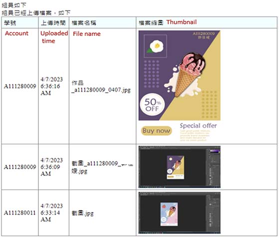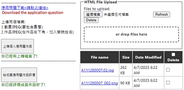 Both classes were given approximately 90 minutes to complete the application question. In the FC+GA class, students had the advantage of being able to browse the uploaded work of their group members, as shown in Figure 3. This feature allowed them to learn from and be inspired by their peers and to gain insights from observing different design approaches. In contrast, the students in the FC class did not have access to this feature and relied solely on their own creativity and problem-solving skills. If they were dissatisfied with their work, students in both classes could refine it and re-upload a revised version, replacing the previous submission. In this way, students could continuously improve their design and strive for a better outcome. Before the end of the session, students in both classes had to upload their final work to be graded by the teacher. This marked the completion of the FC teaching for one learning unit.